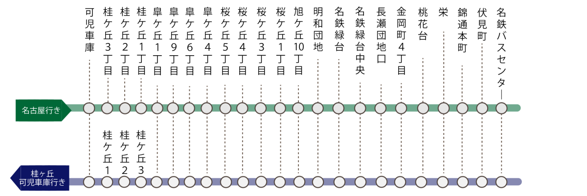 桃花台 | ⇔ | 栄~名鉄バスセンター | 900円 | 9,000円 | 37,800円 | 107,730円 | 204,120円 |