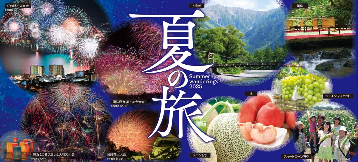 毎年恒例!「諏訪湖湖上花火大会」、去年も好評でした「びわ湖大花火大会」や「敦賀とうろう流しと大花火大会」、グリーンツアー初登場の「岡崎城下家康公夏まつり 花火大会」の4コース🎆!!