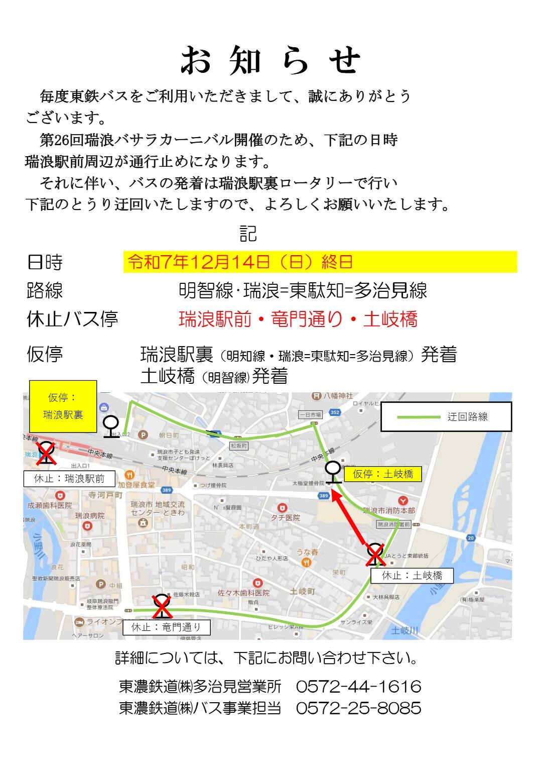 【12月14日】瑞浪バサラカーニバル開催に伴う迂回運行について