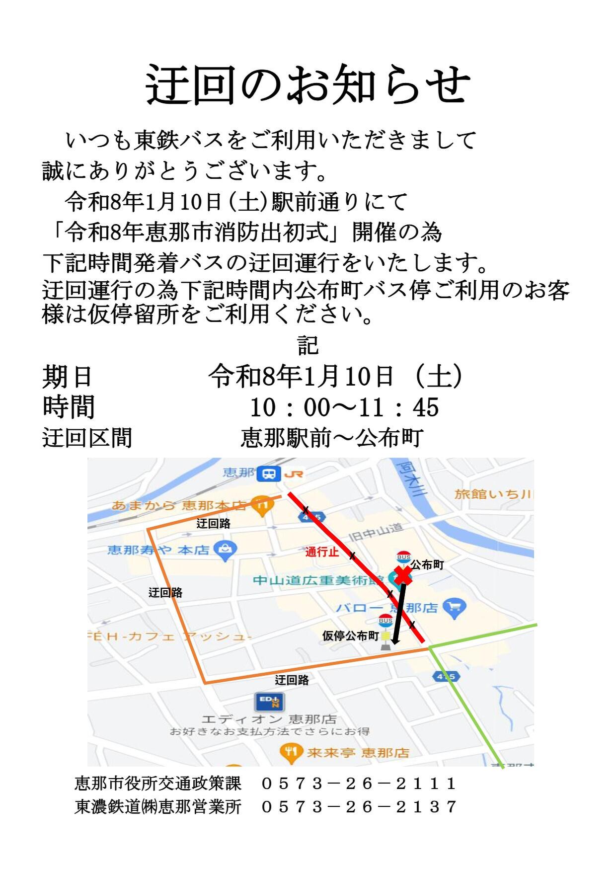【恵那】1月10日 恵那市消防出初式開催に伴う迂回運行について