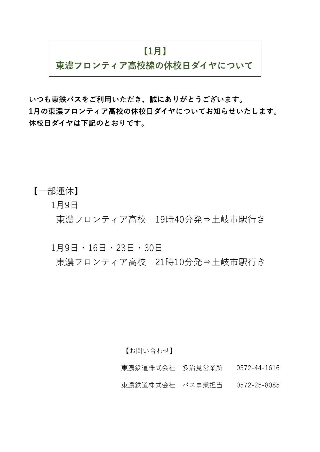 【1月】東濃フロンティア線の休校日ダイヤについて