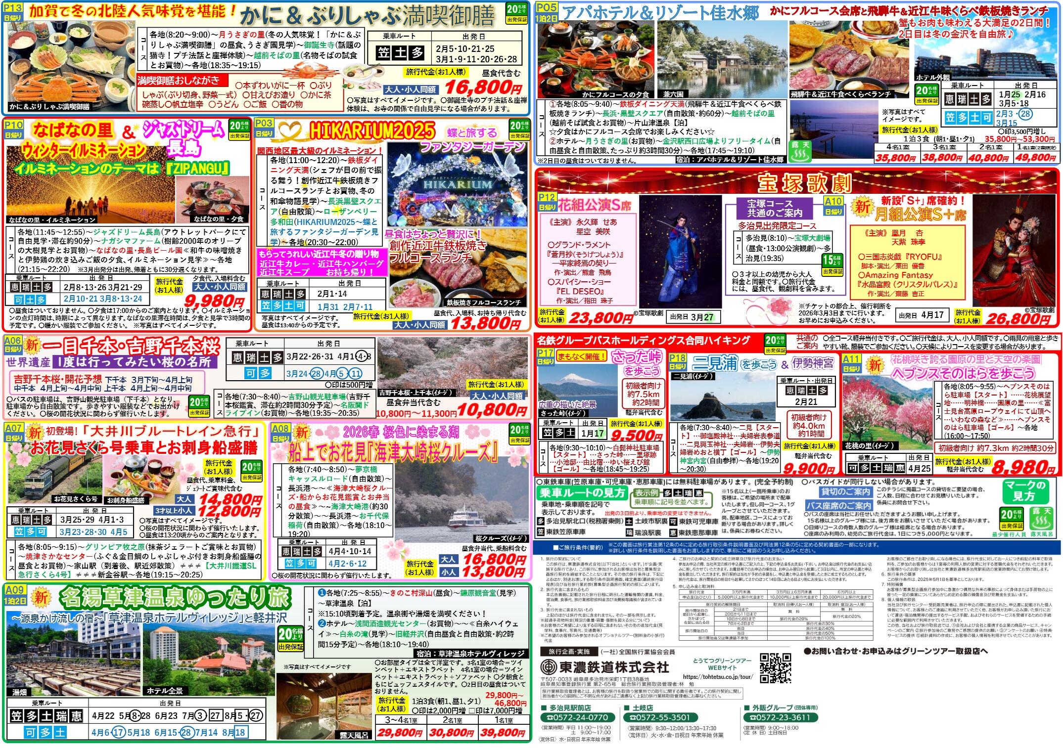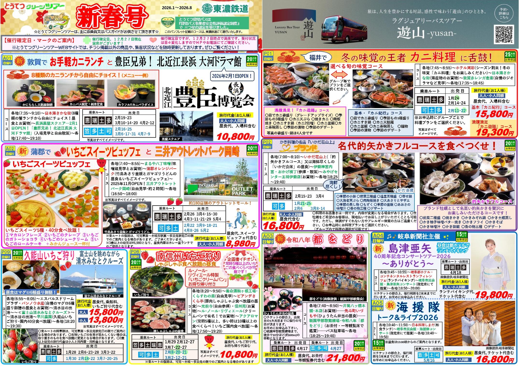グリーンツアーの最新パンフレットは、多治見駅前店、土岐店、東濃鉄道各営業所(車庫)、東鉄アシスト(東鉄商事)、東鉄アシスト(東鉄タクシー)各営業所、グリーンツアー販売をご協力いただいております旅行会社様にございます。