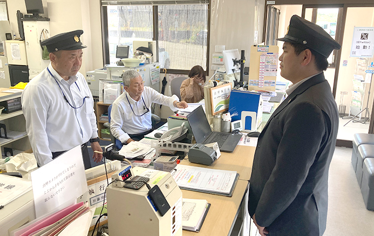 営業所で必要な報告を行い、翌日の勤務を確認します。