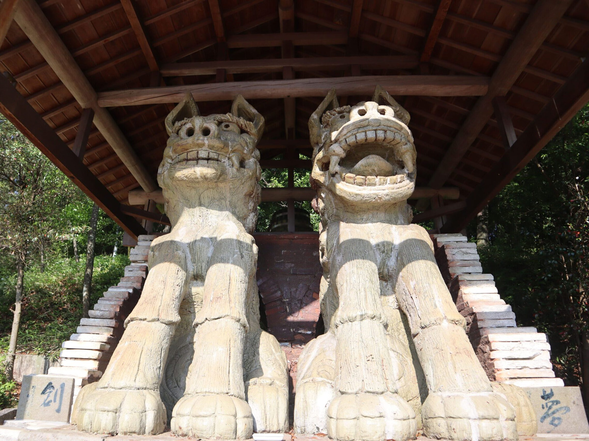 当地区のギネス認定・第1弾!世界一の美濃焼製のこま犬です。高さは3.3m、平成2年に地元の人たちが力を集結し制作されました。年末年始には、約1万個の電球で装飾したライトアップを行い、冬の風物詩にもなっています。お隣の八王子神社へ向かう小径には、小さなこま犬が並んでいて、ゆっくり見て歩くのもお勧めです。