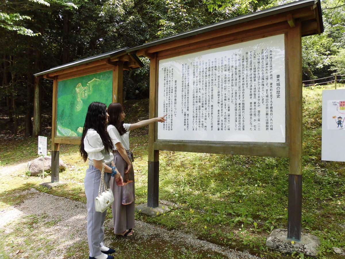 妻木城は標高409Mの城山山頂に築かれた山城です。また城山北側山麓には御殿場跡、士屋敷跡の遺構が残されています。山頂へは急な山道を徒歩で片道約30分の登山となります。