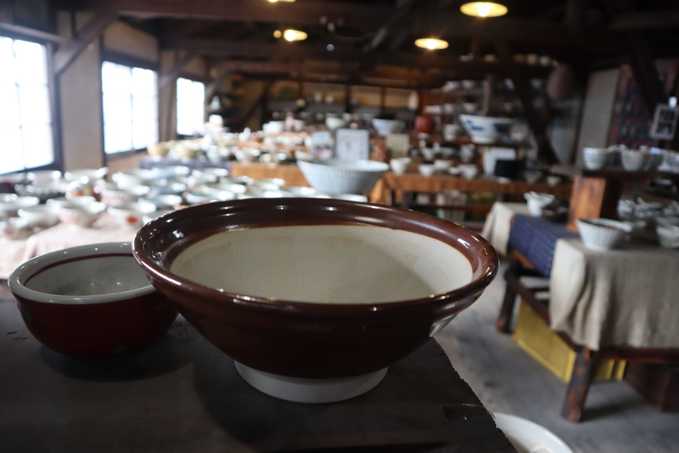 すり鉢生産で日本一のシェアを誇る明治43年創業のマルホン製陶所の資料館。窯と煙突と木造の作業場を展示し即売もしています。