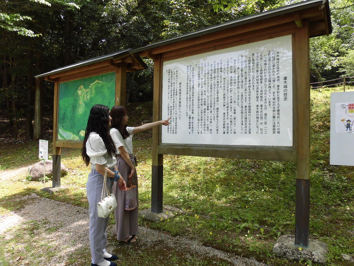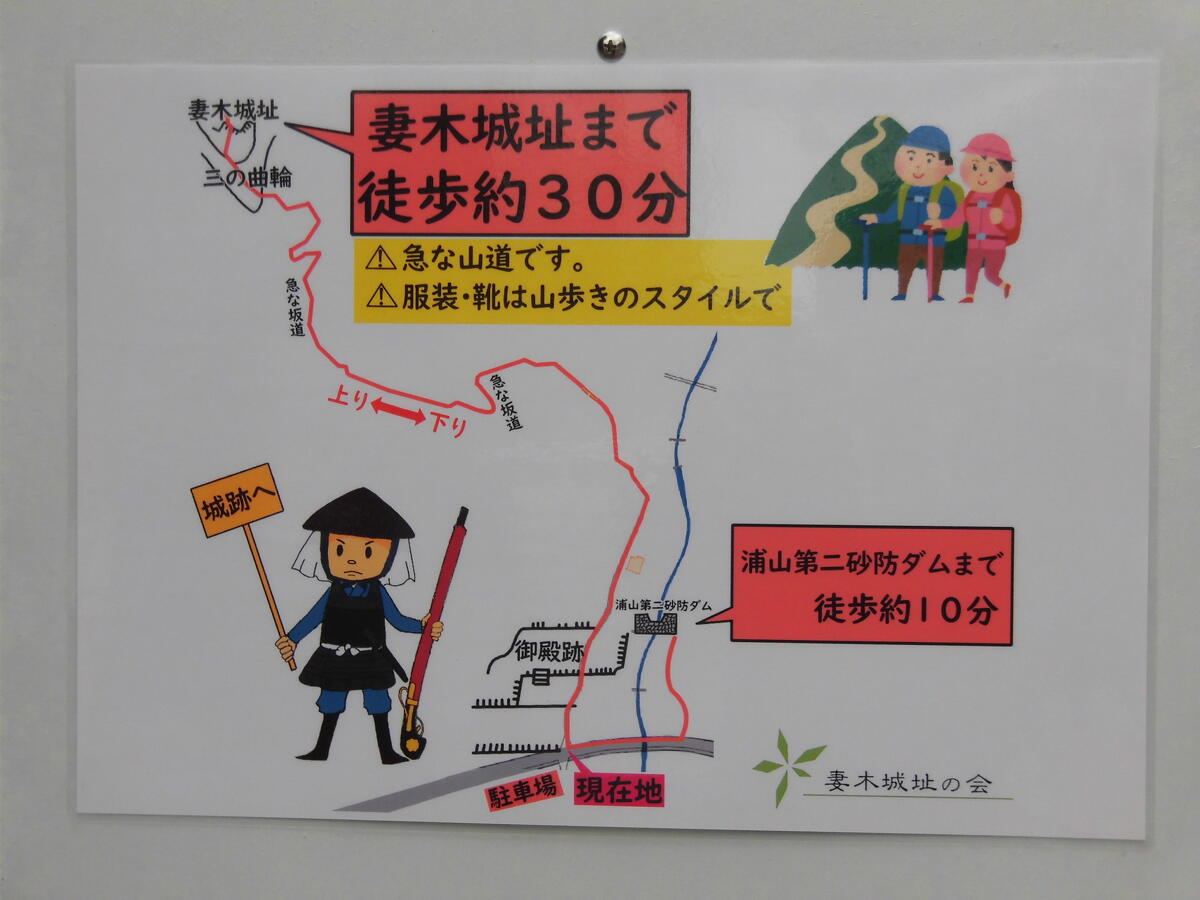 妻木城は14世紀に土岐頼貞の孫土岐明智彦九郎頼重が築いたとされています。「妻木城跡」と「妻木城士屋敷跡」は岐阜県指定史跡になっています。登山口からしばらく登ると、岩を割ろうとした、くさび跡がついている巨石や土塁、曲輪が残っており、お城の大きさを想像するだけでワクワクしてきますね。
