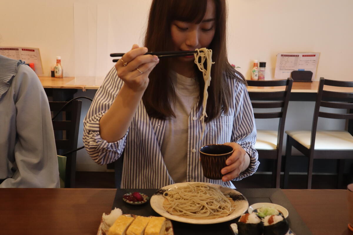 モザイクタイルミュージアム近くにある「手打ちそば楽蔵亭」は、2019年にオープンした新しいお店です。北海道幌加内産蕎麦粉を用いた粗挽きの二八蕎麦は、香り豊かで喉ごしがよいと評判の一品。ランチ時には、お昼限定のサービス定食も揃っているので、単品よりもお得に楽しめます!