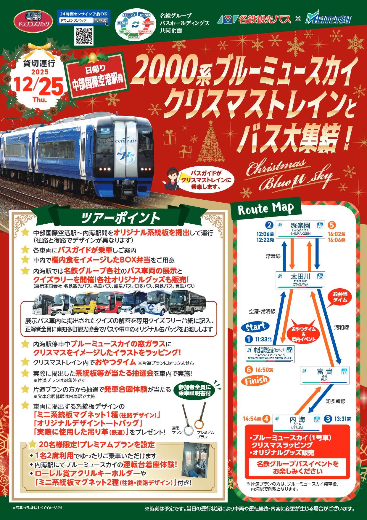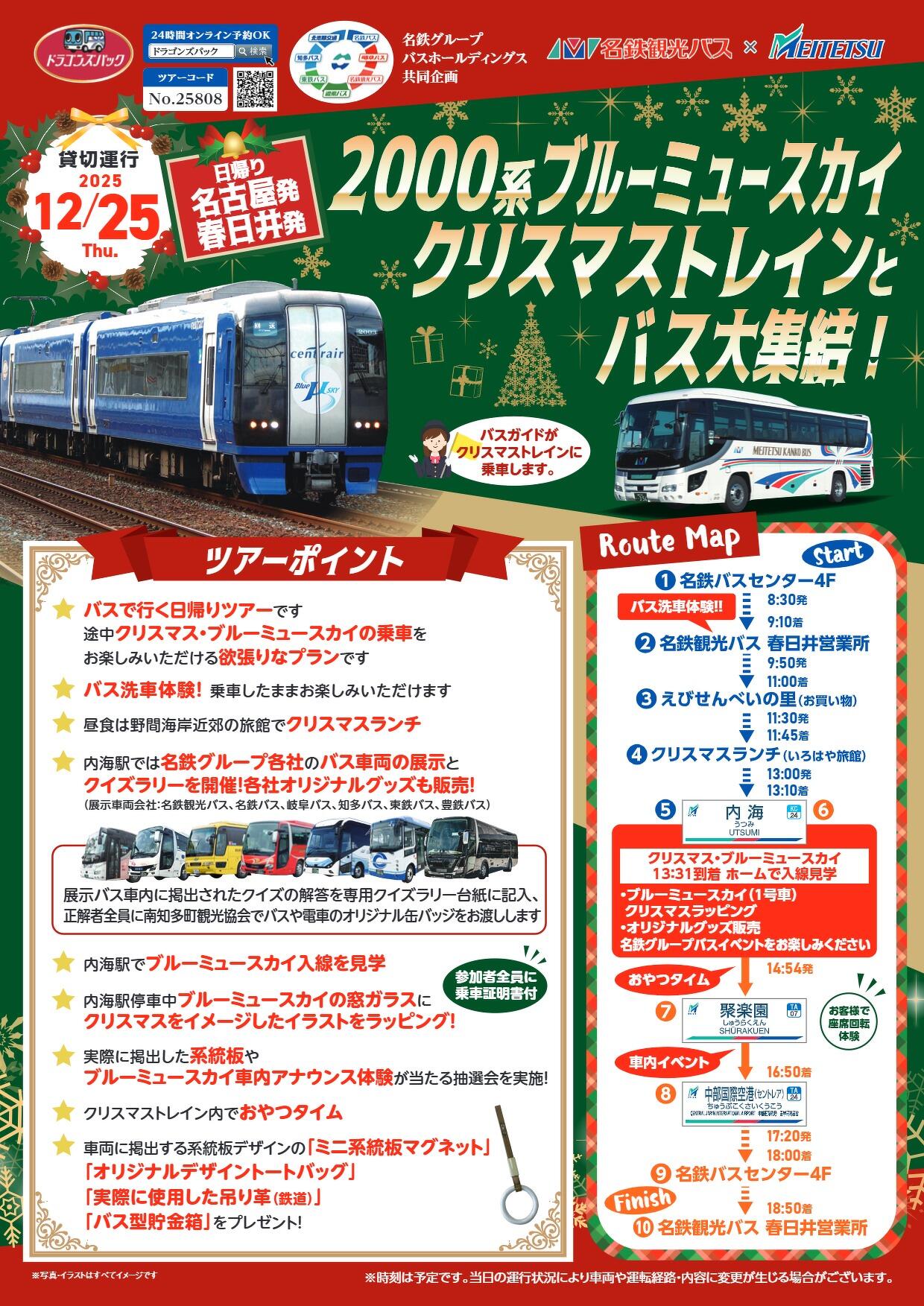 冬の旅 名鉄観光バス主催「12/25発ブルーミュースカイクリスマストレインとバス大集結!」バスツアープラン 名鉄観光バス主催「12/25発ブルーミュースカイクリスマストレインとバス大集結!」鉄道プラン 秋の旅 盛夏の旅 夏の旅 新緑の旅 春の旅
