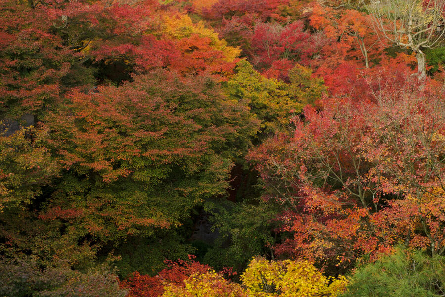通天橋から眺める絶景「錦の雲海」はモミジやカエデなど約2,000本の紅葉で知られています。