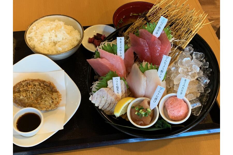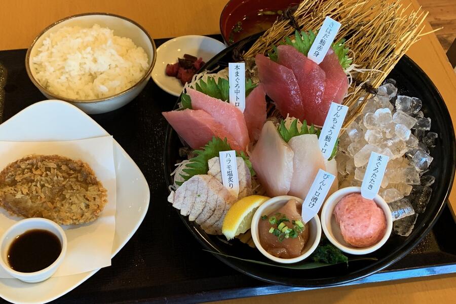 昼食は、バンノウ水産自慢のマグロ6種盛り御膳!