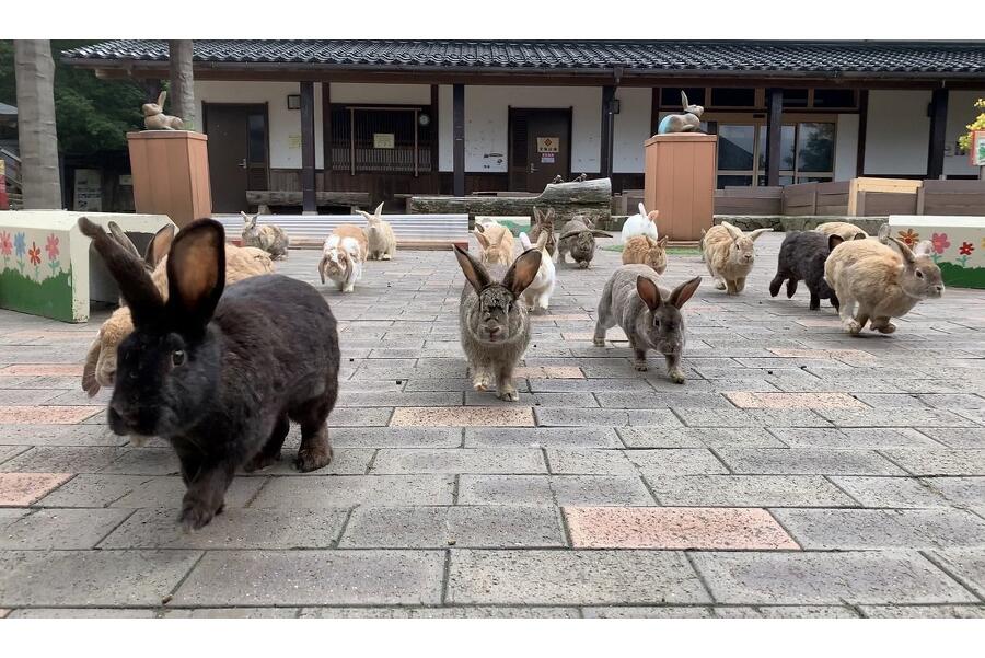 広々とした広場で、たくさんのうさぎと触れ合うことができます。