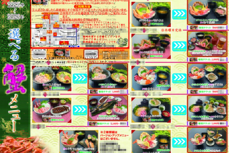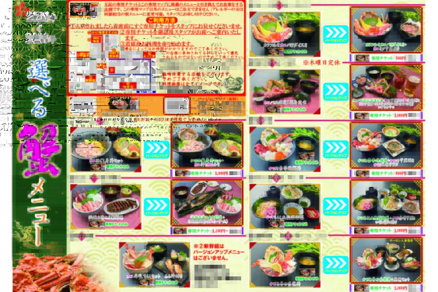 8種類の蟹ランチは、当日バス車内で引換券を配布します。